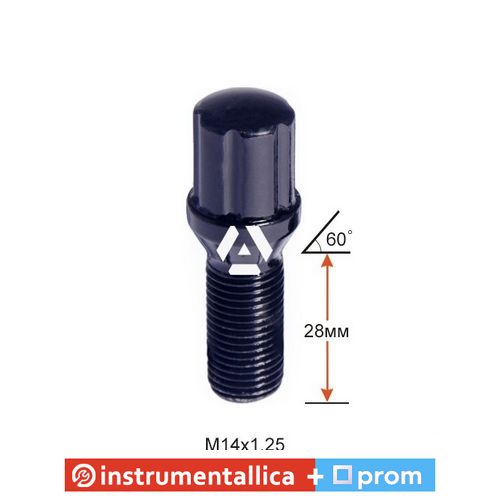 Болт колесный A177110SD BA(73028) M14X1,25X28 Черный Хром 6 Spline Конус с выступом диаметр Cпецключа 20 мм