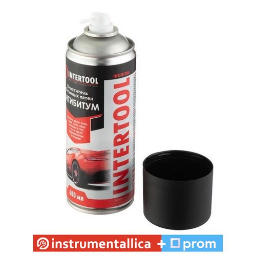 Очиститель битумных пятен (антибитум) INTERTOOL FS-6940 - аэрозольное средство на основе органических растворителей, предназначенное для быстрой и эффективной очистки поверхностей от пятен битума, гудрона, смолы, следов антикоррозийной обработки кузова, следов от резины. Очищает поверхности от масел, красок, смазок, асфальтной крошки, старой полироли, следов насекомых и птиц.