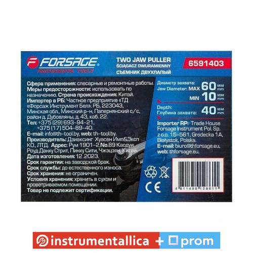 Съемник двухлапый диаметр захвата 60 мм глубина захвата 40 мм F-6591403 Forsage