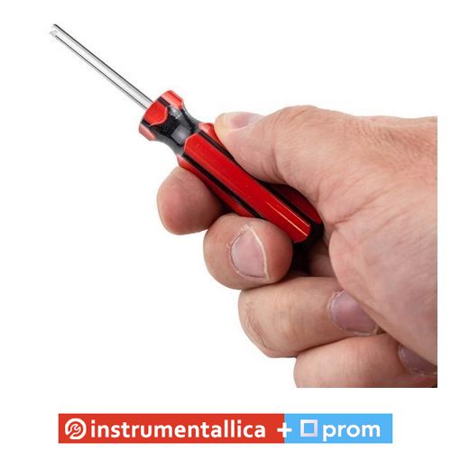 Отвертка для ниппелей RF-VCT-04 в блистере с наконечником U2.6 - это удобный инструмент для ремонта шин и для снятия сердечника стержня клапана, работы с ниппелями на различных типах транспортных средств. Она подходит для автомобилей, велосипедов, мотоциклов и тележек и может использоваться для замены или ремонта ниппелей на колесах, а также регулировки давления воздуха в шинах.
