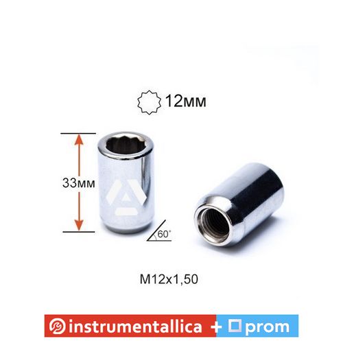 Гайка колісна A210345(2033) DST20B33 Cr M12X1,50X33 Хром Конус внутрішня 10 променева зірка діаметр 20 мм