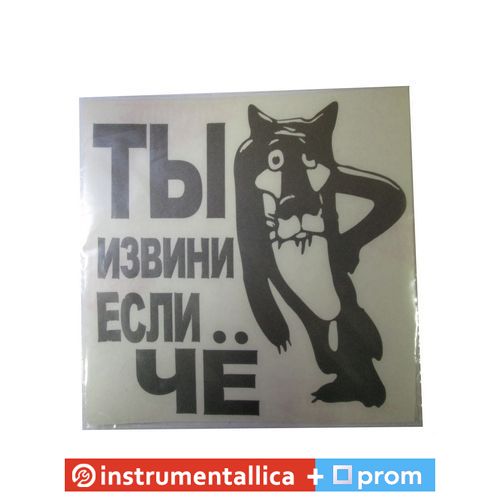 Наклейка Вовк Ти цеизвин, якщо че чорна 16 см х 16 см