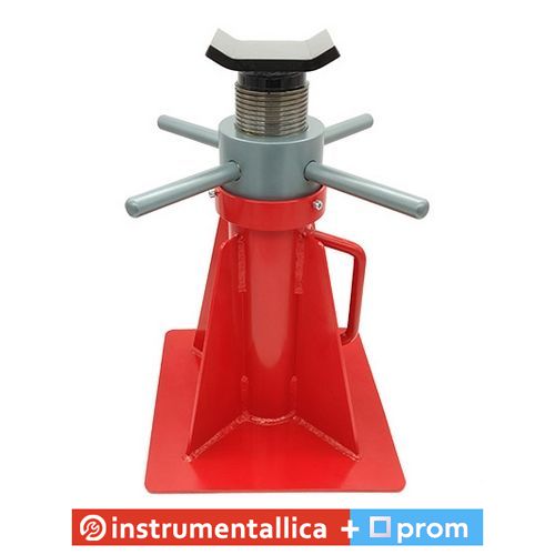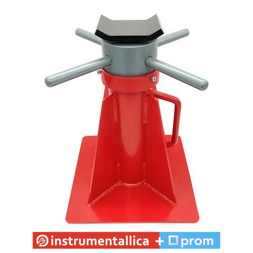 Звареної конструкції з габаритною гладкою підошвою не страшні нерівності підлоги в гаражі. Під час роботи на вулиці підставка не піде в ґрунт завдяки збільшеній площі конструкції. Зручна п'ята для підхоплення агрегату або кузова автомобіля гарантовано утримає будь-який допустимий вантаж. Підіймальний механізм обладнаний чотирма ручками, які працюють під навантаженням без нарощування плеча для посилення крутного моменту.