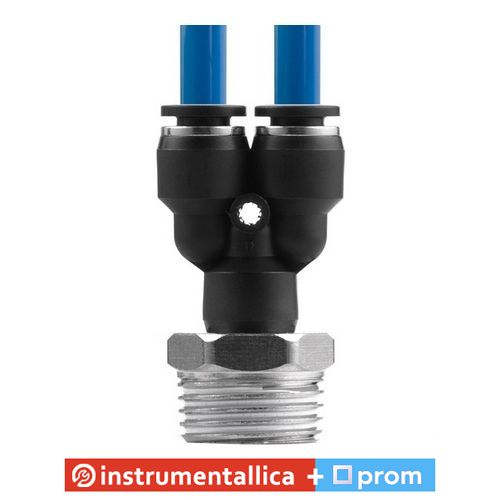 Цангове з'єднання Y-подібної форми застосовується під час створення пневматичних магістралей і для монтажу пневмосистем. Забезпечує повністю герметичне з'єднання різних пневматичних шлангів без пошкодження їхньої поверхні (PU, PE, PA) — поліуретанових, поліетиленових, поліамідних та ін.