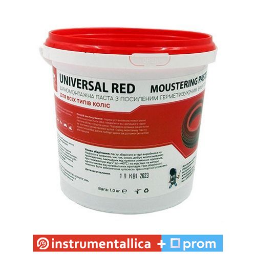 Шиномонтажна паста UNIVERSAL RED з герметизувальним ефектом — щільної структури, призначена для бортування всіх видів шин. Колір може варіюватися від блідо-рожевого до насичено-рожевого відтінку. Шиномонтажна паста дає змогу усунути "прикипання" шини до диска. Монтажна паста забезпечує легке ковзання металом, що дає змогу безпечно та якісно встановити покришку на обід.