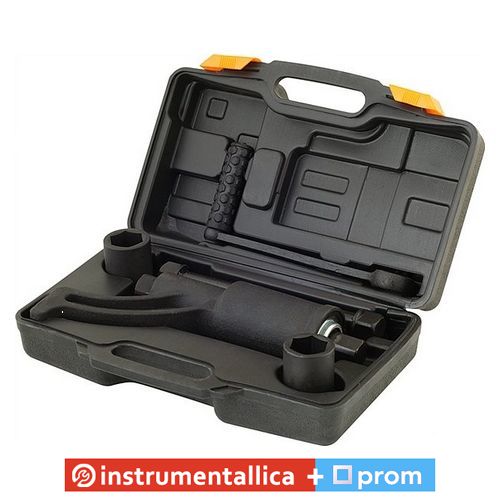 Цей ключ постачається в зручному кейсі з міцної пластмаси. Також не маєважки той факт, що до стандартного комплекту постачання входять додаткові головки розмірами 17, 19 і 21 мм. Весь набір у кейсі зручно розташувається в багажнику Вашого автомобіля або на полицях гаража.
