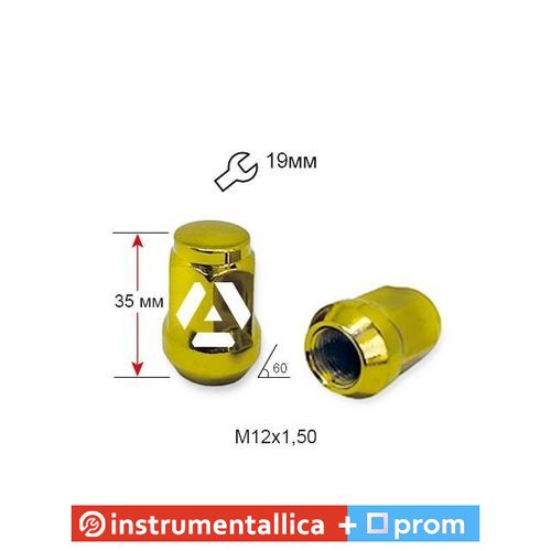 Гайка колісна A801445GD(13735) M12х1,5х35 мм Конус Mazda, Kia, Hyundai, Daihatsu Закрита Золотий Хром Ключ 19