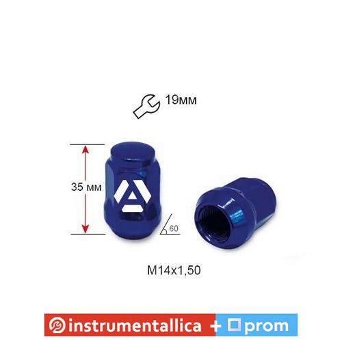 Гайка колісна A801448BU (13735) M14х1,5х35 мм Конус Закрита Синій Хром Ключ 19